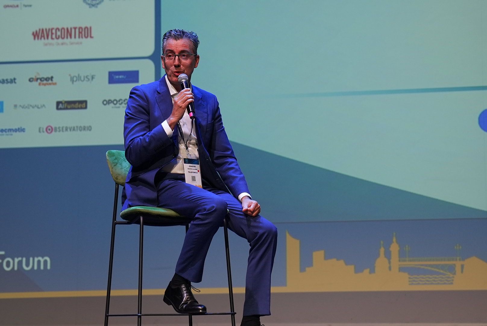 Telefónica estuvo presente con un stand y una participación activa en los contenidos: Joaquín Segovia, nuestro Director Territorial Sur, abrió el evento con una ponencia estratégica, y también contamos con la intervención de un cliente que compartió su experiencia sobre el uso del 5G slicing en servicios de emergencia. Además, ofrecimos dos ponencias online, una dedicada al talento femenino en tecnología y otra sobre innovación.