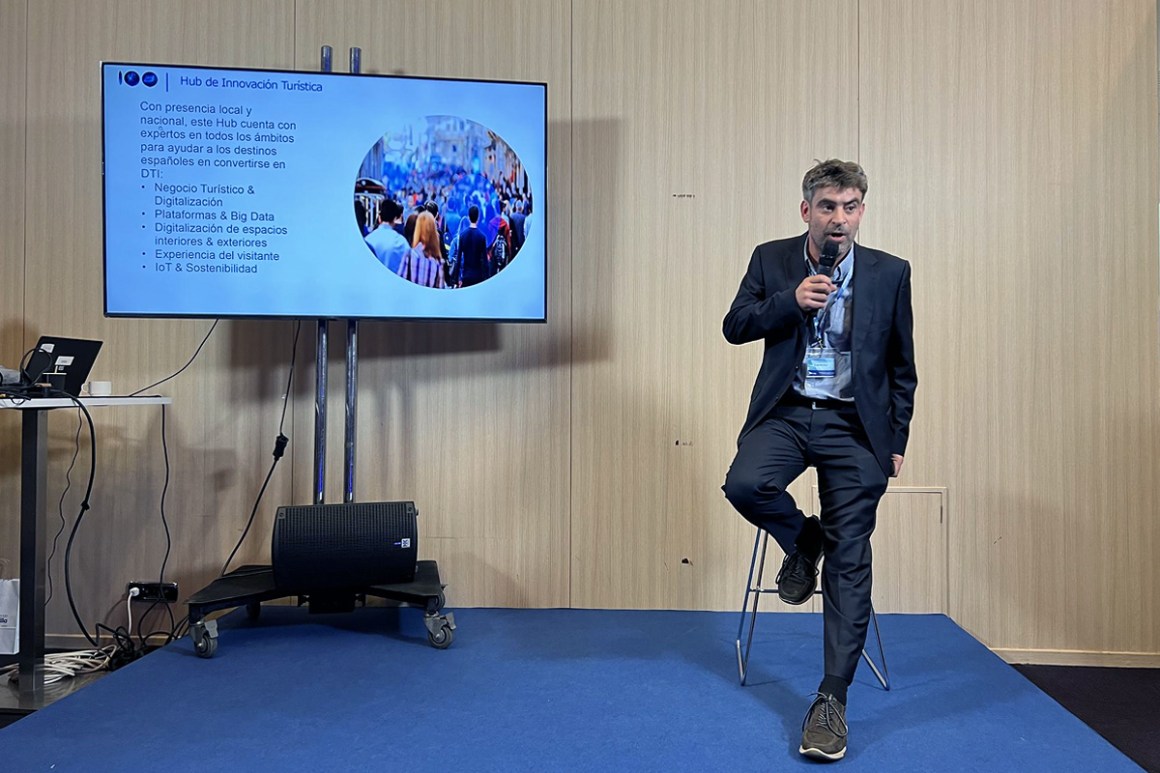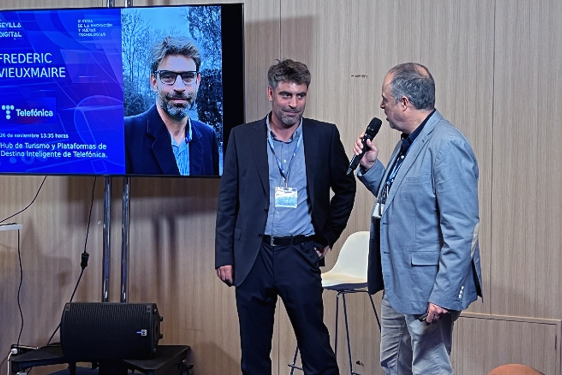 Presentación a cargo de Frédéric Vieuxmaire, Responsable Smart City para Telefónica España sobre la experiencia de Telefónica Empresas en Smart City y Turismo y el Hub de Innovación Turístico que estamos lanzado junto con más de 50 empresas para prestar apoyo especializado para ayudar a la digitalización de los destinos.