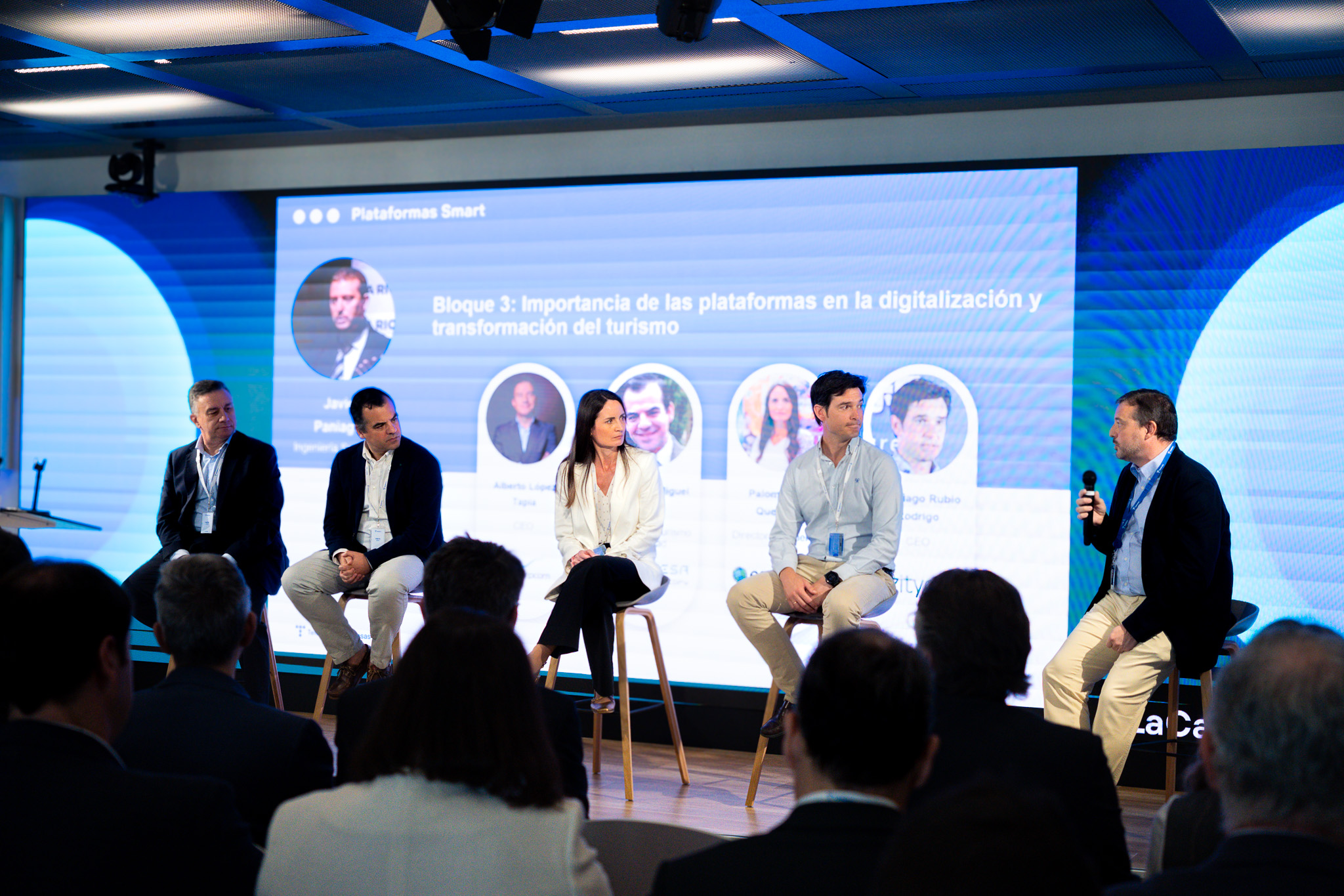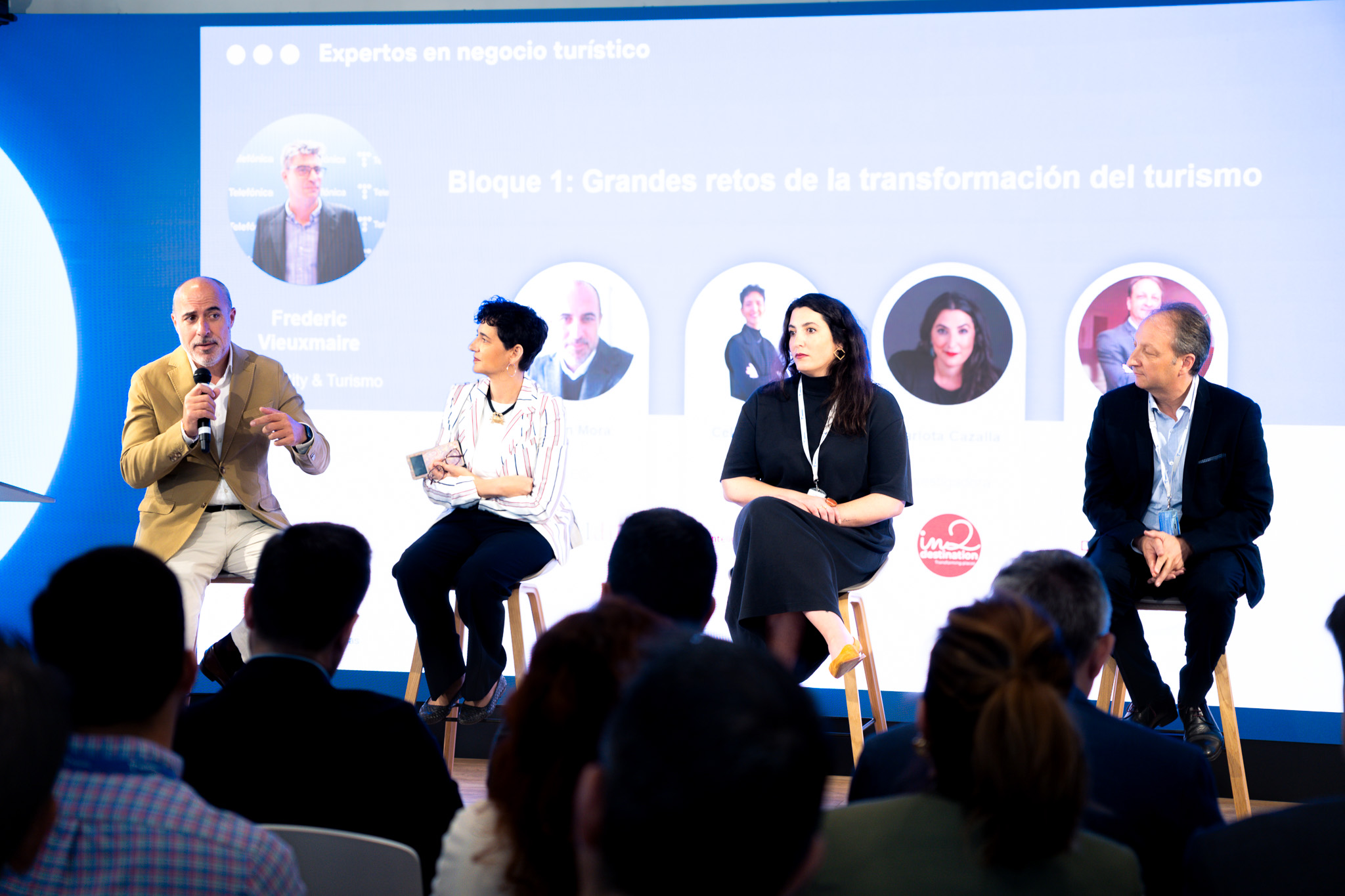 Frederic Vieuxmaire, Smart City & Turismo, con John Mora, CEO de Globaldit; Celia Romero, CEO de inteligenciaturistica.com; Carlota Cazalla, Investigadora de In2destination, y Santiago Paz, CEO de Dos Espacios.
