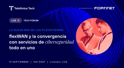 El Tech Forum “La nueva era de las plataformas, flexWAN y la convergencia con servicios de ciberseguridad todo en uno”, tuvo lugar el pasado 19 de septiembre a las 16 horas, a través del perfil de LinkedIn Telefónica Tech, junto con Fortinet.
