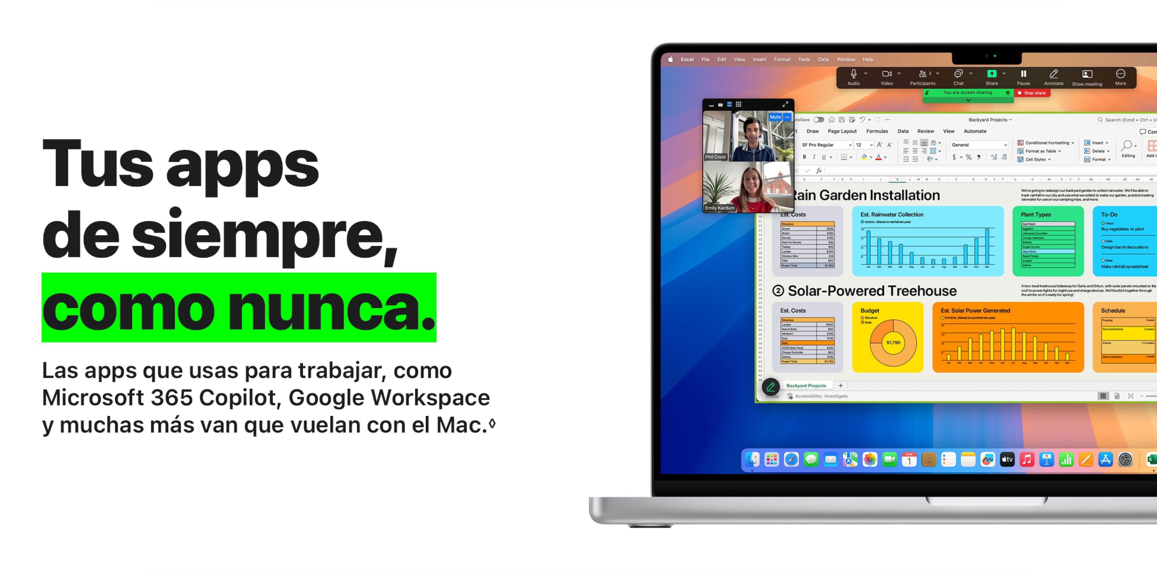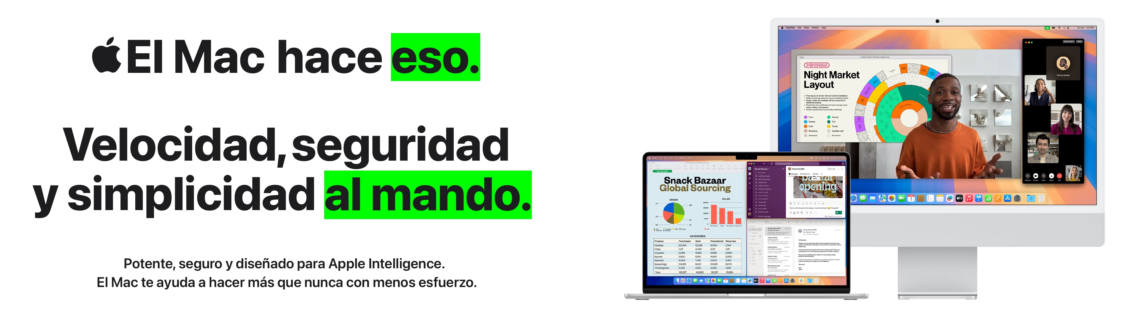 Mac ofrece una experiencia potente e intuitiva, capaz de gestionar hasta las cargas de trabajo empresariales más exigentes. Diseñado para Apple Intelligence y optimizado para flujos de trabajo de IA y aprendizaje automático, Mac ofrece un alto rendimiento gracias a una batería que dura todo el día y una espectacular pantalla Liquid Retina XDR.