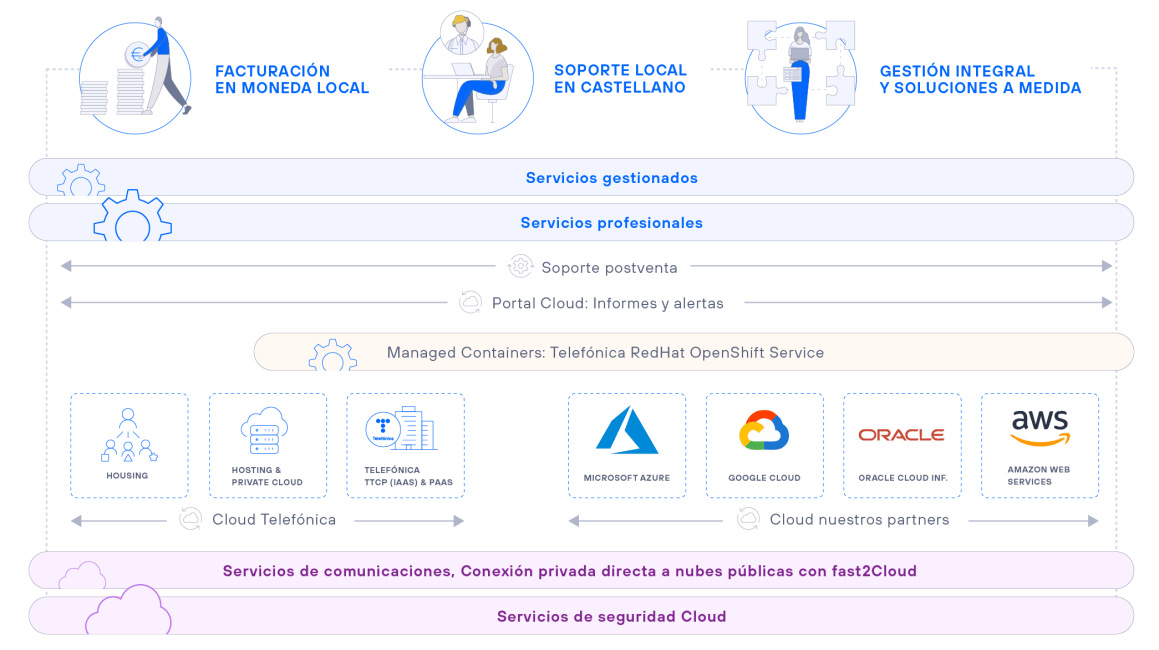 Sí, en Telefónica contamos con un servicio único en el mercado con este objetivo, se llama fast2Cloud. Ofrecemos a nuestros clientes una solución de conectividad donde integramos los servicios actuales de comunicaciones privadas con la interconexión a la infraestructura de los proveedores de nube pública.