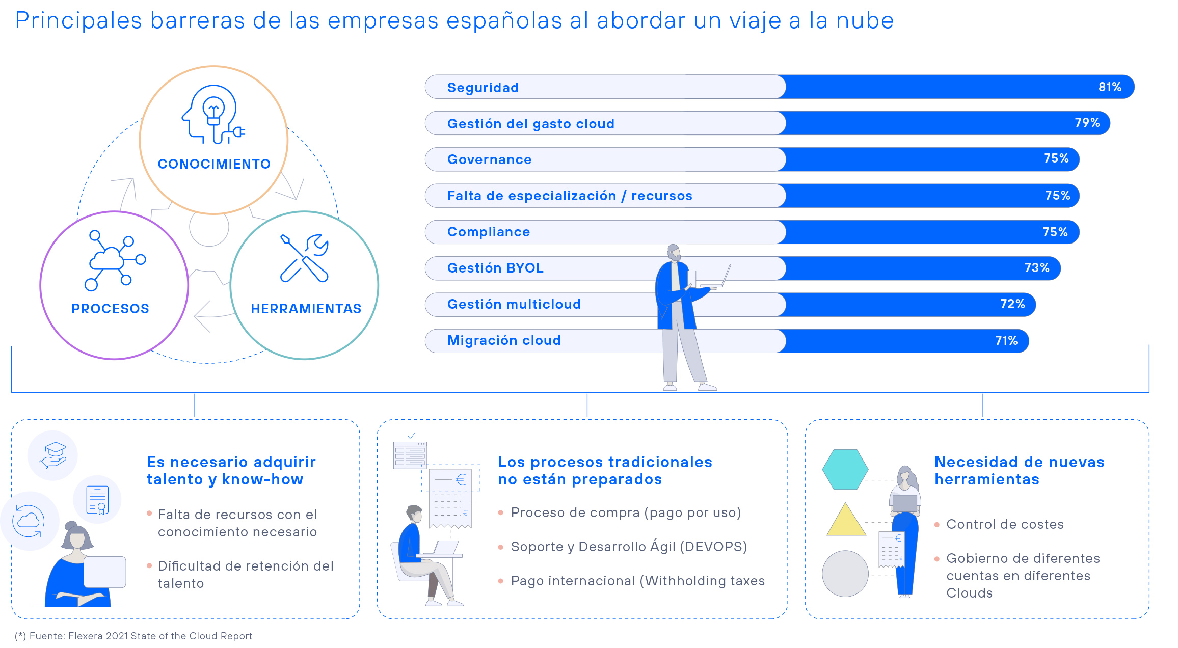 Los beneficios de la nube (flexibilidad, eficiencia, etc) pueden convertirse en problemas de descontrol (costes, seguridad, complejidad) si no se realiza una transformación ordenada y eficiente.